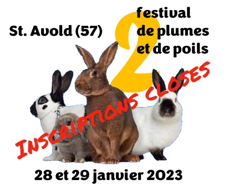 Nous sommes désolés, mais notre participation pour la section cunicole est également annulée, nous invitons les éleveurs de lapins à participer à l'exposition de Château-Salins les 18 et 19 février 2023
