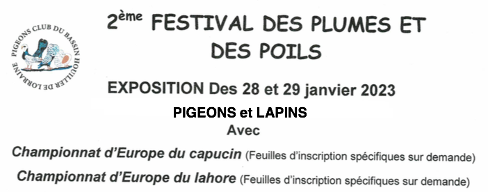 Attention en raison des règles sanitaires en vigueur, seuls Pigeons et Lapins sont admis